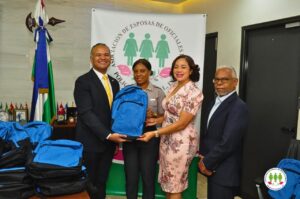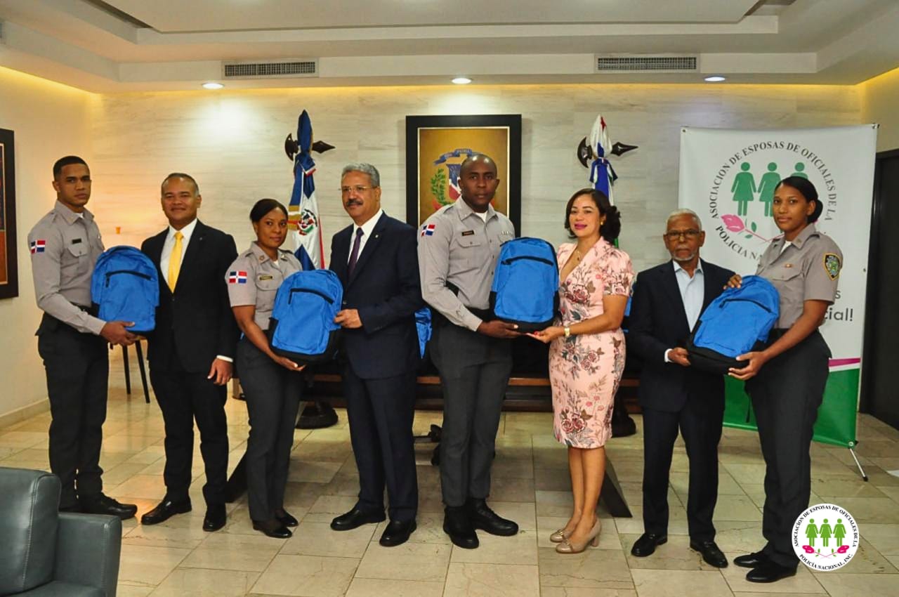La Asociación de Esposas de Oficiales de la Policía Nacional (Aseopna), a cargo de la señora Ingrid Castro de Guzmán, expresó su más sincero agradecimiento al Banco Popular Dominicano por la generosa donación de mil mochilas equipadas con útiles escolares, destinadas a los hijos de los policías.