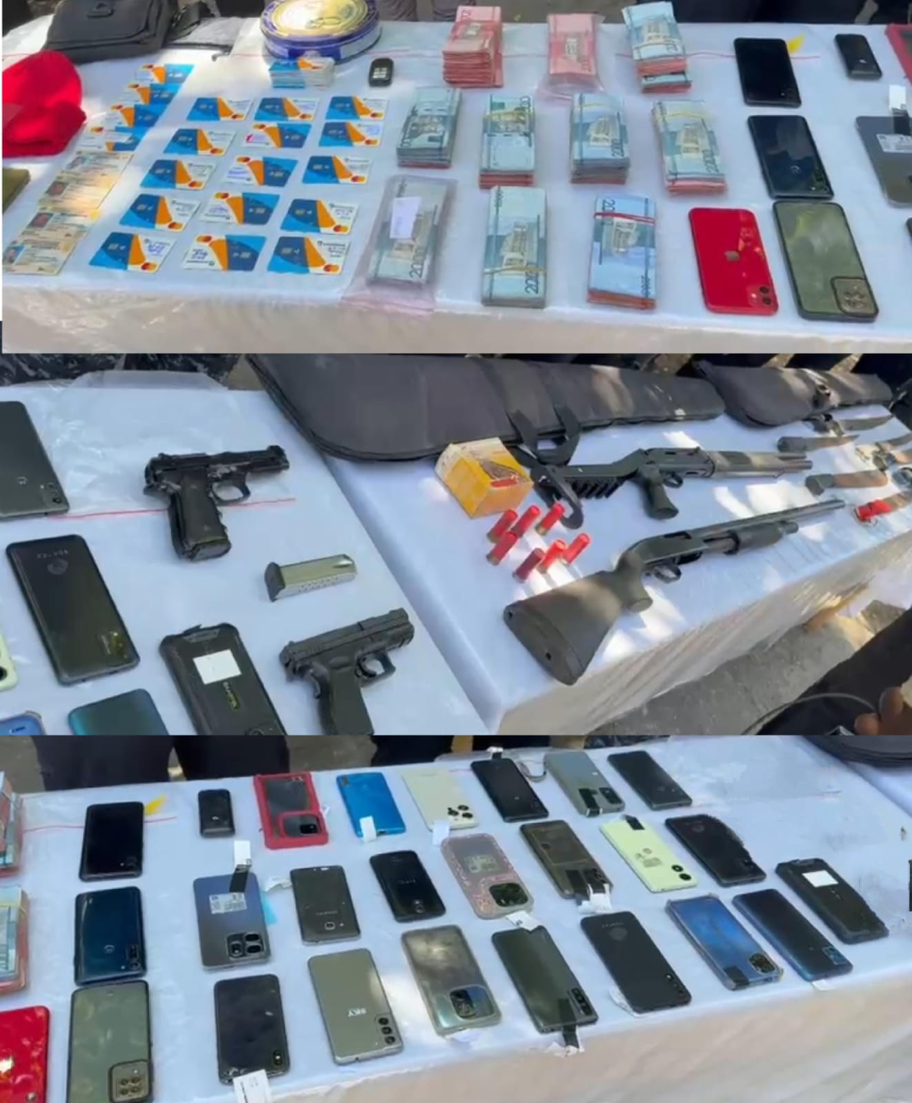 Durante una de las intervenciones, en una vivienda que operaba como compraventa clandestina, fueron ocupados RD$2,400,000.00 en efectivo, 26 celulares sin documentos que justifiquen su procedencia, dos escopetas, una pistola calibre 9mm con cinco cartuchos, siete armas corto punzantes, así como 47 tarjetas bancarias de distintas entidades.