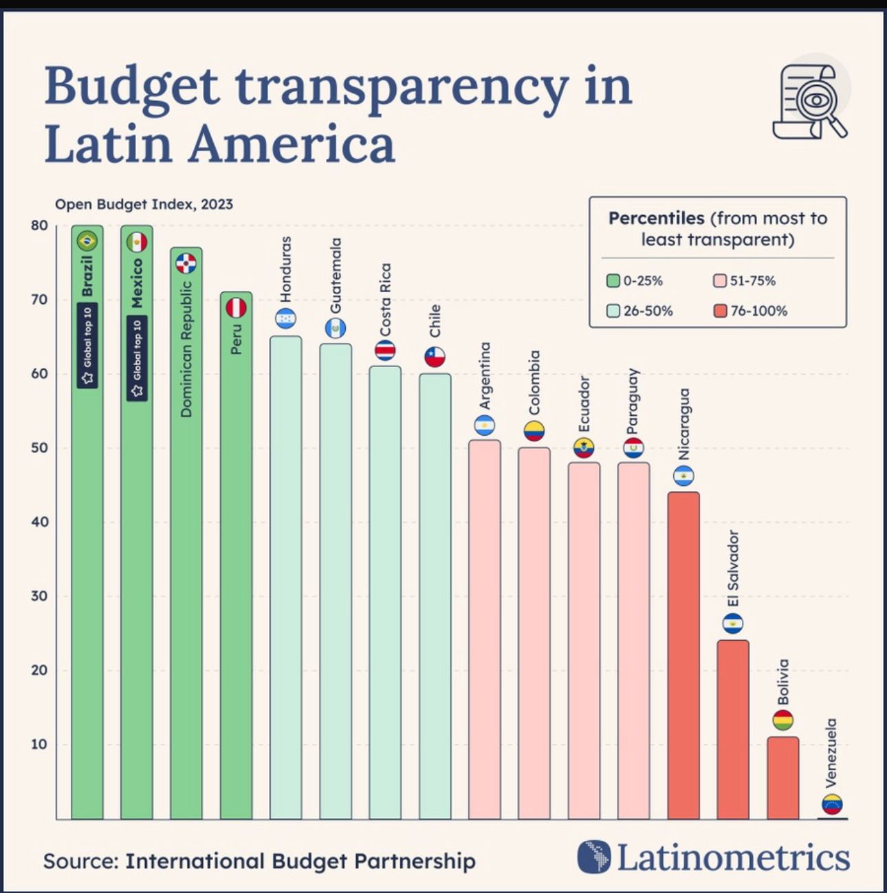 El gráfico del ranking de gobiernos latinoamericanos más transparentes es precedido por la pregunta “¿Alguna vez te has preguntado por qué algunos países latinoamericanos ocultan sus presupuestos mientras otros muestran cada centavo gastado?».