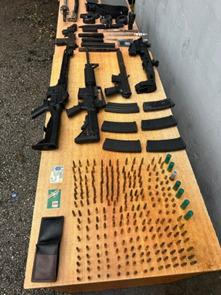 Durante la intervención, realizada en una residencia ubicada en la calle Luis E. Del Monte, las autoridades ocuparon dos fusiles calibre 5.56, dos armas tipo Uzi calibre 9mm y un revólver calibre .38, así como 190 cápsulas para fusil, municiones adicionales de 9mm y cartuchos calibre 12, entre otros pertrechos militares.
